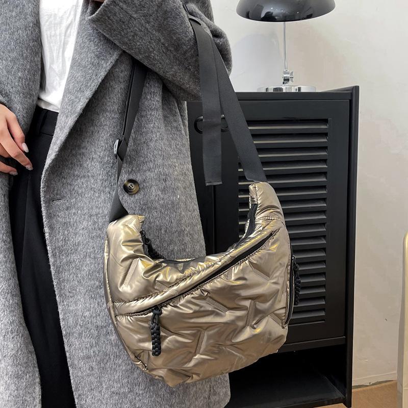 Сумка через плечо женская зимняя 2024 новая хлопковая сумка большой вместимости трендовая рабочая сумка для поездок на работу сумка-тоут золотой
