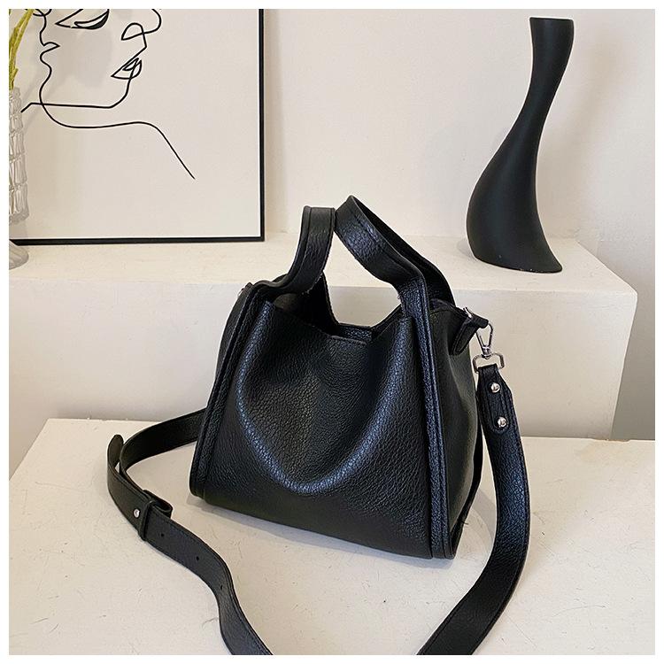 Сумка через плечо женская 2024 простая модная сумка PU сумка с буквами универсальная сумка для поездок на работу сумка-ведро чёрный