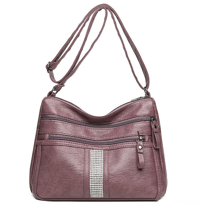 Сумка через плечо из мягкой кожи, сумка на плечо в стиле ретро, простая модная сумка большой вместимости с несколькими карманами для женщин фиолетовый