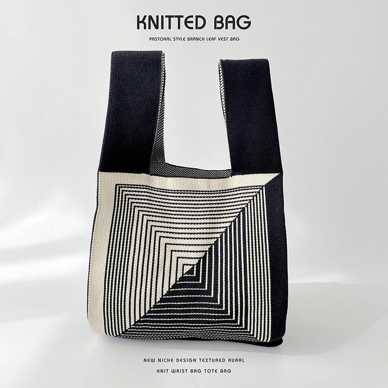 Сумка через плечо из черной и белой трикотажной ткани корейского дизайна - стильная уличная сумка на запястье