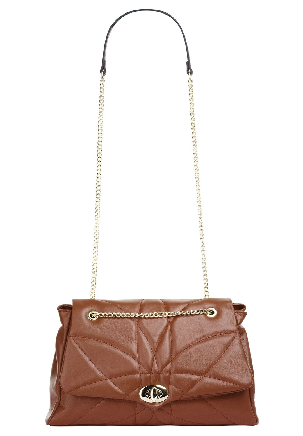 Кожаная сумка через плечо от Cluty привлекает внимание! Модный поворотный замок и плечевой ремень с цепочками расставляют изящные акценты и придают сумке элегантный вид. Под клапаном крышки спрятано основное отделение, которое разделено на две части запирающимся внутренним карманом. Там можно легко хранить кошелек, мобильный телефон, ключи и многое другое. Карманы в основном отделении и на спине идеально подходят для хранения мелких вещей. * Производство Италии * Изготовлено из 100% коровьей кожи * 1 основное отделение, состоящее из двух частей, с поворотным замком * 1 внутренний карман на молнии * 1 задний карман * Плечевой ремень с цепочкой (105 см)
