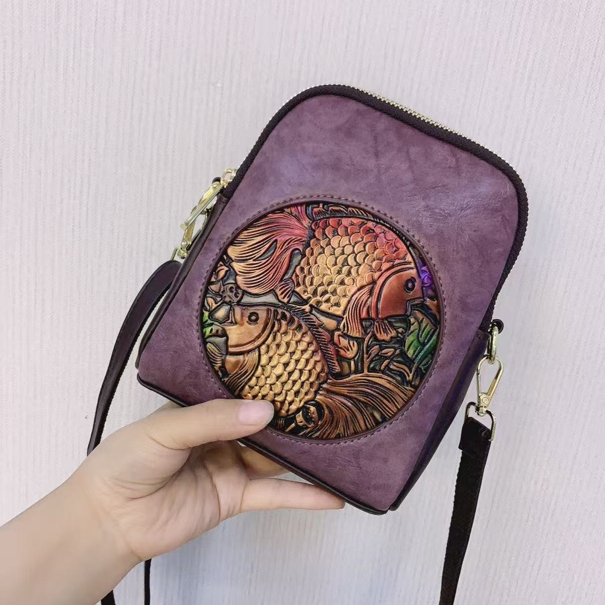 Сумка через плечо с тиснением Koi в этническом стиле, большая вместимость, легкая, с несколькими клипсами, премиум-фактура - современные женские сумки через плечо фиолетовый