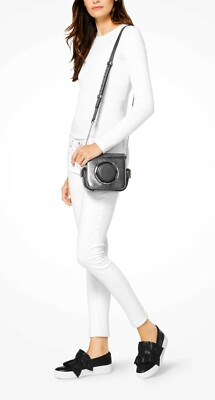 Сумка через плечо Michael Kors Scout Md Camera, серебристая с тиснением металлик, новинка, Michael Kors Jet Set Travel