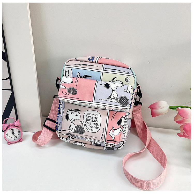 Сумка школьного типа на одно плечо с принтом, множество карманов для хранения, большая вместительная сумка квадратной формы, водонепроницаемая нейлоновая ткань, косой крой на одно плечо. розовый