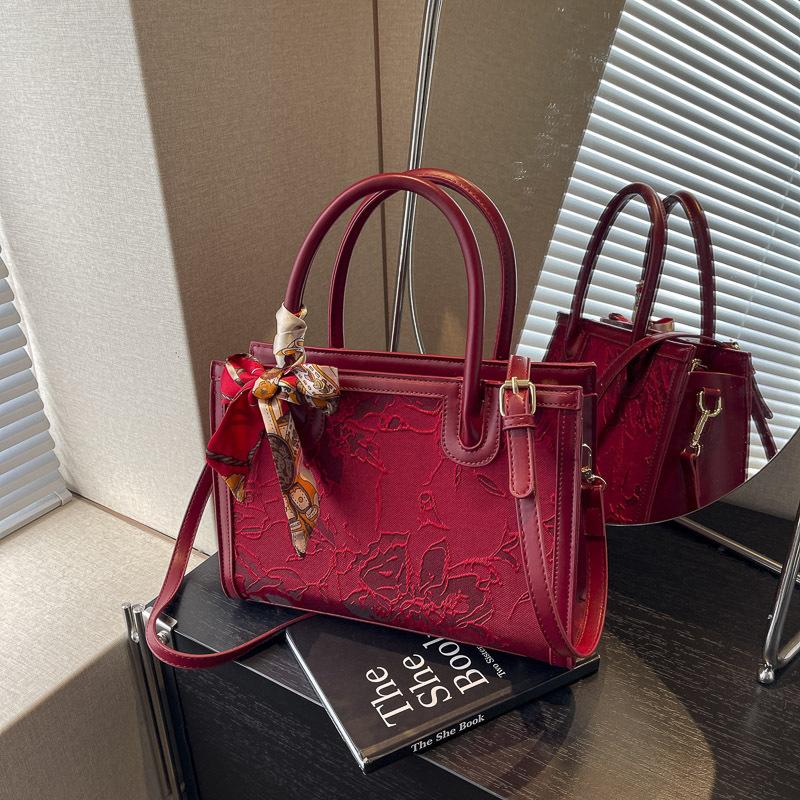 Сумка Guofeng женская 2024 года, новая модная красная свадебная сумка, сумка через плечо, большая вместительная свадебная сумка бордовый