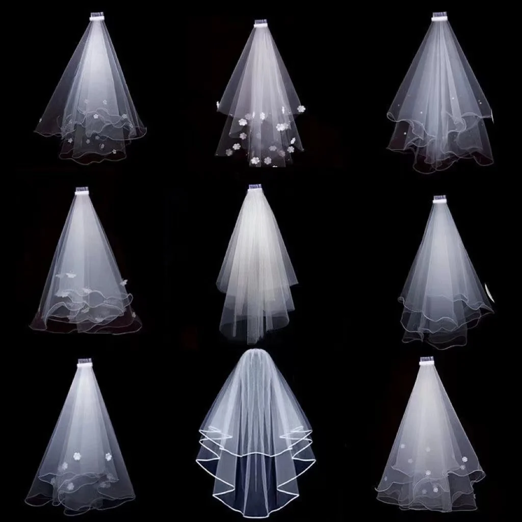 2 Layers Wedding Veil Woman Tulle with Comb Bridal Shower Hen Night Bride Gift Bachelor Party Supplies Photo Props Simple Veils