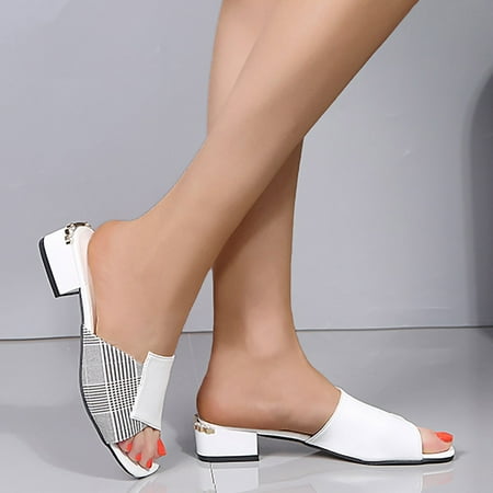Aayomet Womens Slippers Medium Heel Fashion Heel Sandals Slippers Summer Fish Fashion Spring Casual Women And Mouth Women s White 8