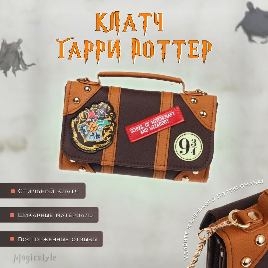 Сумка Гарри Поттер - идеальный аксессуар для всех фанатов знаменитой саги. Стильный клатч с двумя отделениями и удобными застежками. Сумка-клатч будет актуальна в любой сезон года! В сумку кросс-боди помещается все необходимое: телефон, зеркальце, кошелек, ключи, небольшая косметичка. У сумочки Гарри Поттер несколько тематических нашивок школы Хогвартс, два отделения. Закрывается на кнопочку. Лямка в виде золотой цепочки. Выглядит очень мило, проработана до мелочей, милых сердцу поттеромана. Идеальный аксессуар для любителей фильма и книг Гарри Поттер, с такой сумочкой можно почувствовать себя студентом одного из любимых из факультетов: Гриффиндор, Слизерин, Когтевран или Пуффендуй. Маленькая сумка кошелек подойдет как на каждый день, так и для особых случаев. Элегантная, вечерняя, праздничная, офисная, школьная, повседневная сумка Гарри Поттер лучший выбор для ценителей качества и удобства. Стильная сумка сочетается с платьем, джинсами, кедами, туфлями и с любыми элементами гардероба. Аксессуар отлично подойдет для Хэллоуина, маскарада или тематического праздника. Порадуйте своих близких на новый год, день рождения, 8 марта, юбилей или любой другой праздник. Сувенир придется по душе как детям, так подросткам и взрослым.Материал: матовая плотная фактурная эко-кожа с нашивками в виде герба школы Хогвартс и платформы 9 и три четверти, металлическая фурнитураЦвет: сумочка коричневого цвета с яркими акцентами (нашивками), лямка-цепочка и другая фурнитура золотого цвета