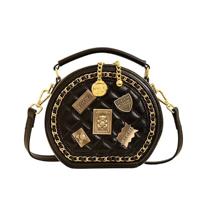 Сумка Xiaoxiangfeng 2025 новая корейская версия модная персонализированная трендовая сумка на одно плечо женская кроссбоди маленькая круглая сумка чёрный