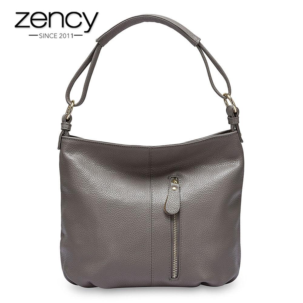 Сумка Zency из 100% натуральной кожи, женская сумка через плечо, модная женская сумка через плечо, сумки-тоут, черный, серый цвет