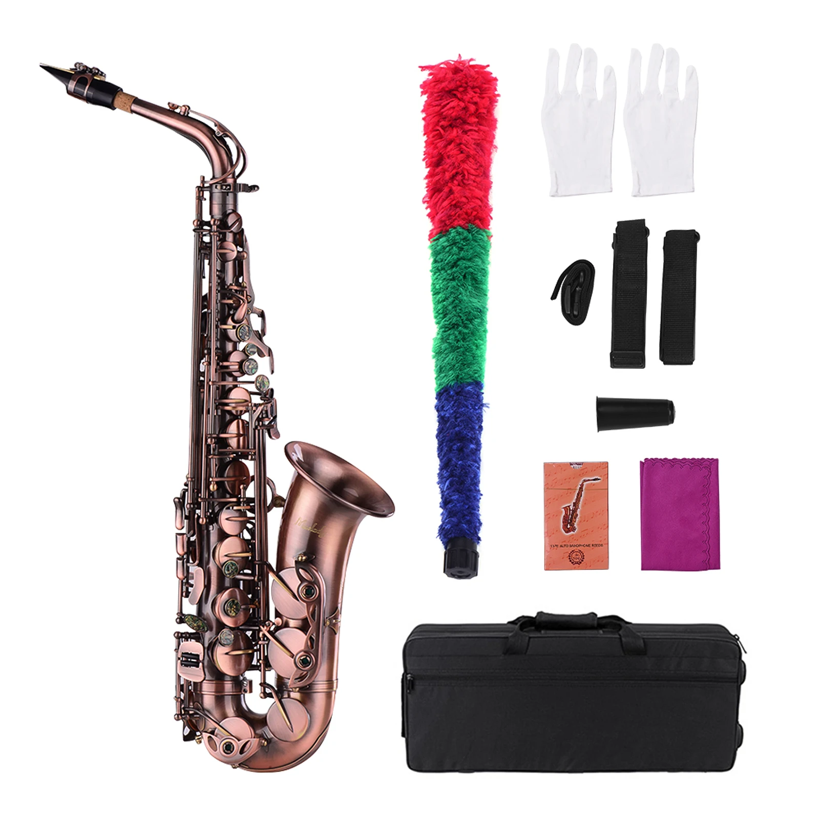 Muslady Bent Eb Alto Saxophone E-flat Sax Carved Pattern Saxophone with Carry Case Gloves Cleaning Cloth Brush Sax Straps Reeds