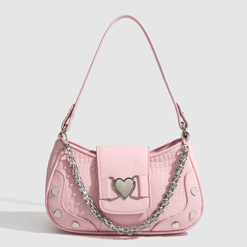 Сумки через плечо, новые женские креативные сумки с розовым принтом в виде сердца и сердечком, подмышечная сумка для отдыха, универсальная ручная сумка, сумки через плечо