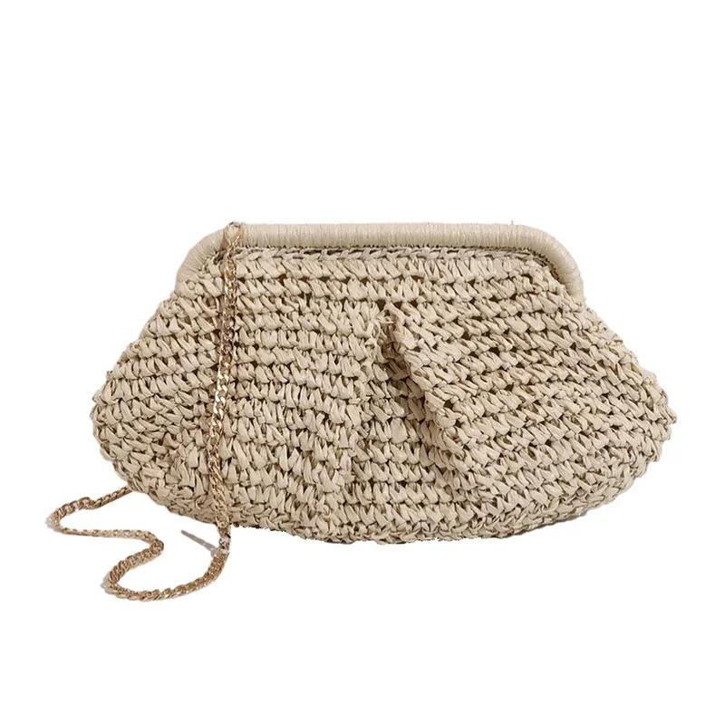 Сумки через плечо с соломенной цепочкой, новые однотонные простые модные сумки через плечо, универсальные модные молодежные женские сумки