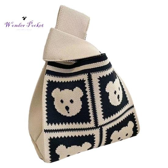 Сумочка с мультяшным медведем и розой. Эстетическая вязаная крючком большая сумка. Сумка на запястье. Bear бежевый