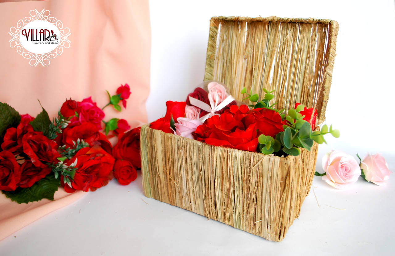 Сундук сделано из натуральных материалов добавляет букету изысканность и роскошь.