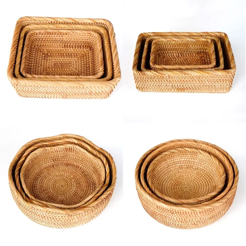 Retro Handmade Woven Basket Rattan Woven Material Storage Basket Decorative Storage Bamboo Basket