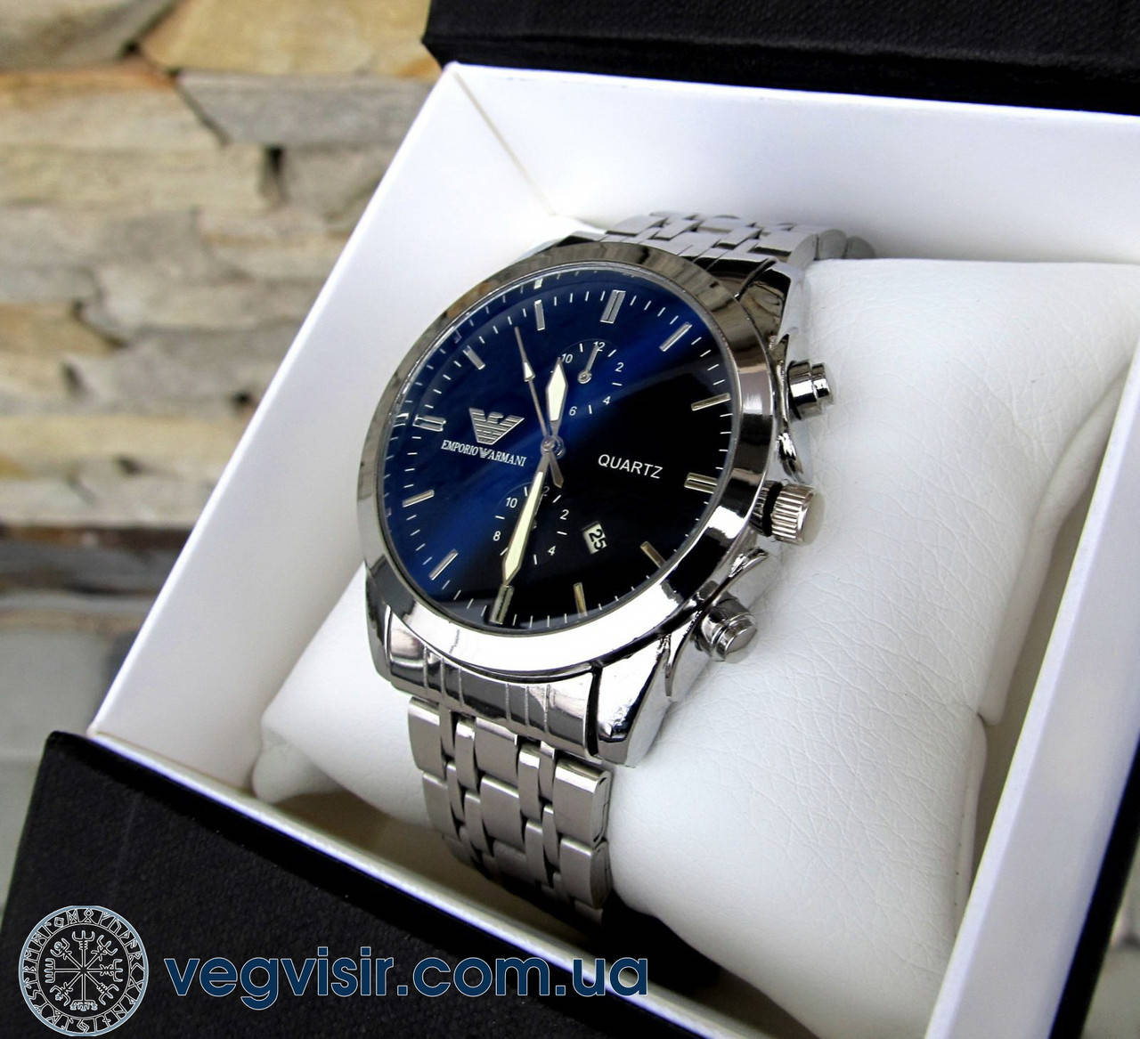 Супермодные кварцевые мужские наручные часы Emporio Armani в серебре