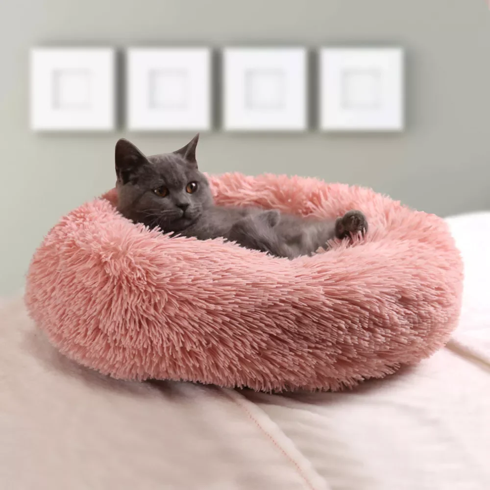 Супермягкий длинный плюшевый теплый коврик для кошки, симпатичная легкая корзина для домашних животных, кровать для сна, круглая пушистая у...