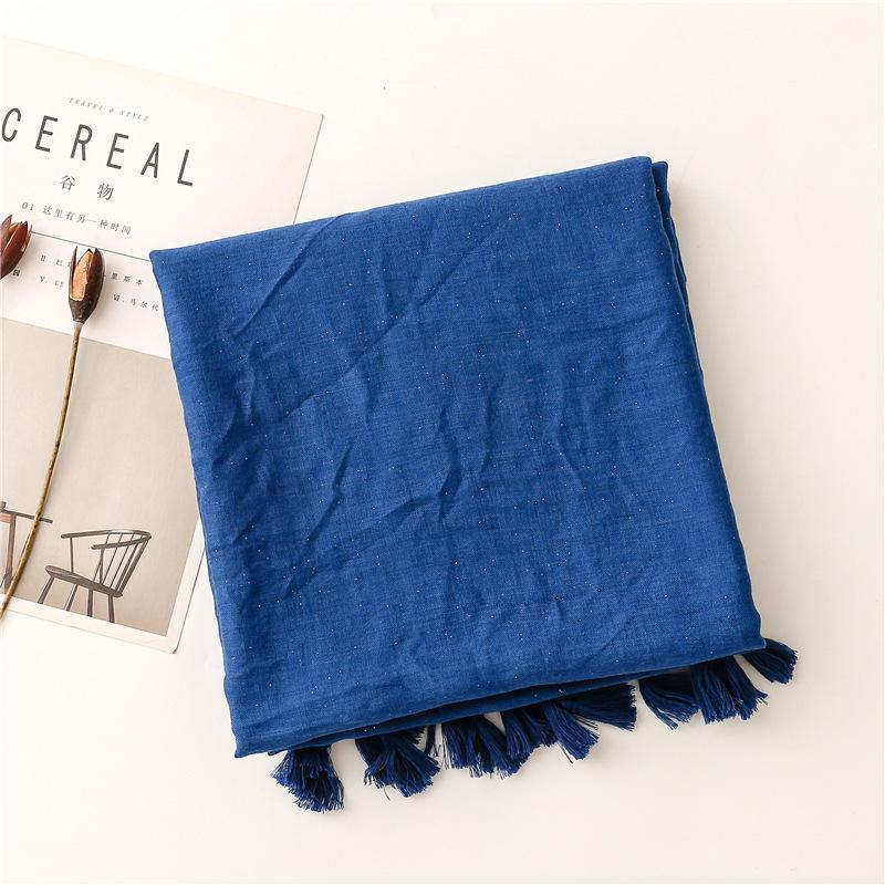 Супер Красивый Однотонный Блестящий Шарф с Кисточками Нежно-розового Цвета из Хлопка и Пеньки Длинный Шелковый Шарф Солнцезащитная Шаль Двойного Использования Японский Оригинал 180*90 синий
