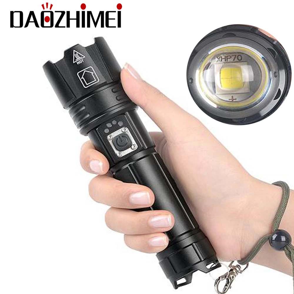 Супер яркий светодиодный фонарик XHP70, 5 режимов, масштабифонарь фонарик, Usb перезаряжаемый аккумулятор 18650 или 26650, функция внешнего аккумулятора, фонарик