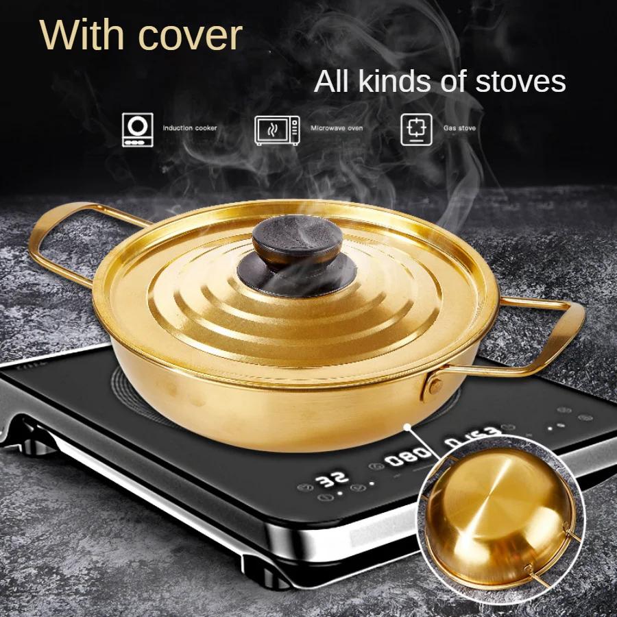 Суповая кастрюля в корейском стиле со спиральным покрытием, кастрюля из нержавеющей стали для лапши быстрого приготовления, золотой хот-пот, маленькая кастрюля с двумя ручками, суповая кастрюля, кастрюля для молока