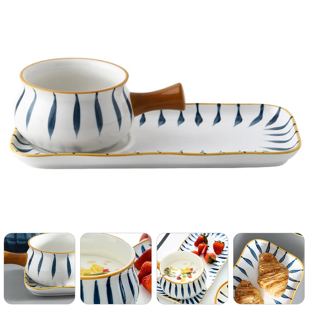 Суповая кастрюля, изысканная керамическая кастрюля для лапши, керамическая суповая кастрюля с подносом (650 мл)