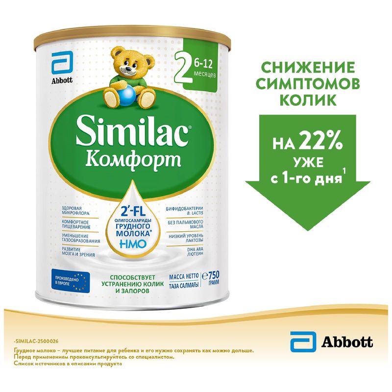 Сухая молочная смесь Similac Комфорт 2 с 6 до 12 месяцев для детей с коликами и запорами 750 г