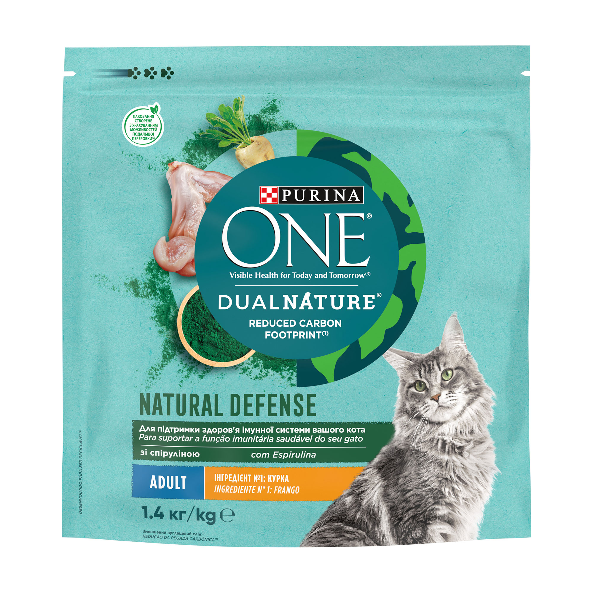 Сухий корм для дорослих кішок Purina One Adult Dual Nature Spirulina з куркою, 1,4 кг