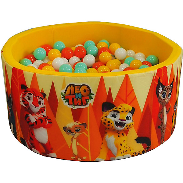 Сухой бассейн Hotenok "Лео и Тиг", желтый с оранжевыми деревьями, 40 см, 200 шариков, Разноцветный
