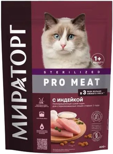 Сухой корм для кошек Мираторг Pro Meat c индейкой (для стерилизованных кошек старше 1 года) 400 г
