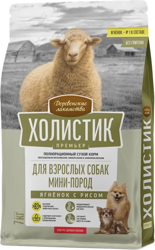 Сухой корм для собак Деревенские лакомства Холистик Премьер для мини-пород. Ягненок с рисом 7 кг