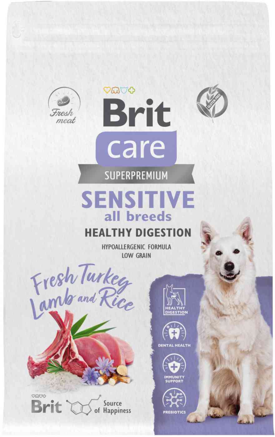 Сухой корм для собак всех пород с чувствительным пищеварением Brit Care Superpremium Sensitive ягненок-рис