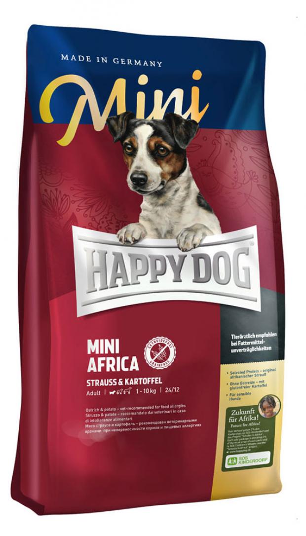 Сухой корм для собак мелких пород Happy Dog Supreme Mini Africa При кормовой непереносимости с мясом страуса и картофелем, 1 кг
