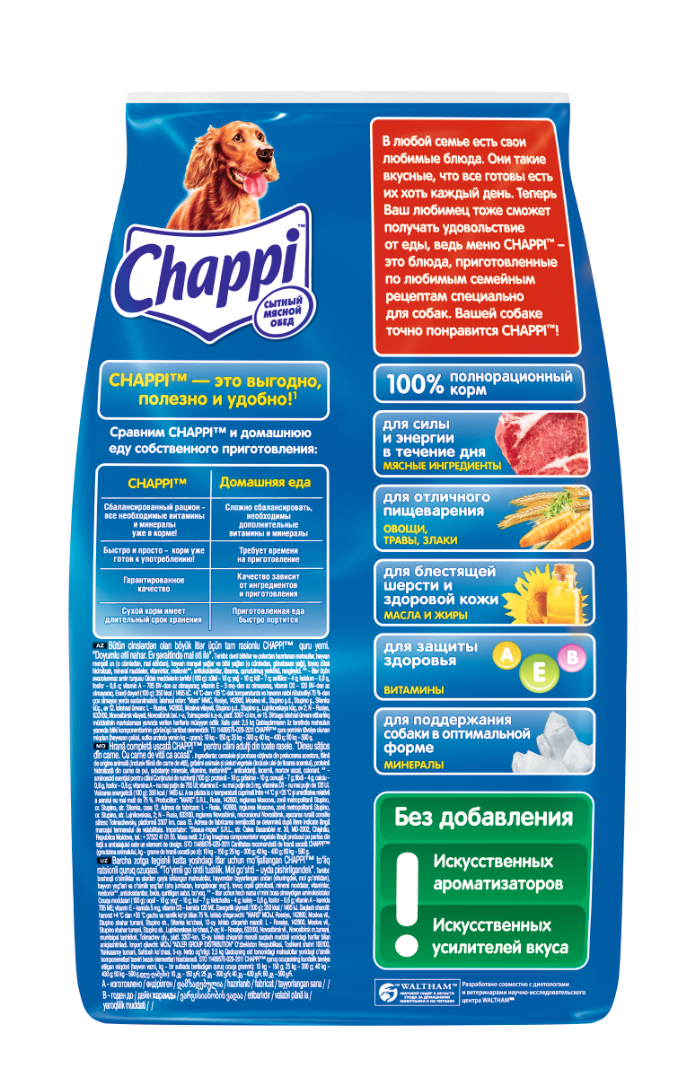 Сухой полнорационный корм для собак Chappi Сытный мясной обед с говядиной по-домашнему 2.5 кг