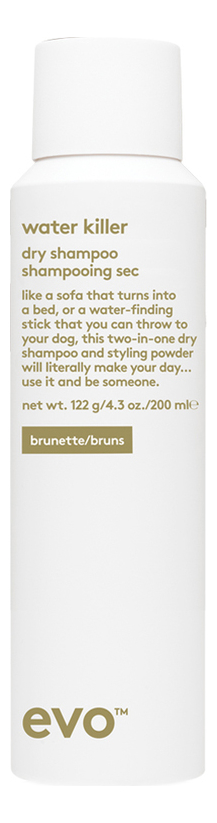 Сухой шампунь-спрей для темных волос Water Killer Dry Shampoo Brunette: Шампунь-спрей 200мл, Сухой шампунь-спрей для темных волос Water Killer Dry Shampoo Brunette