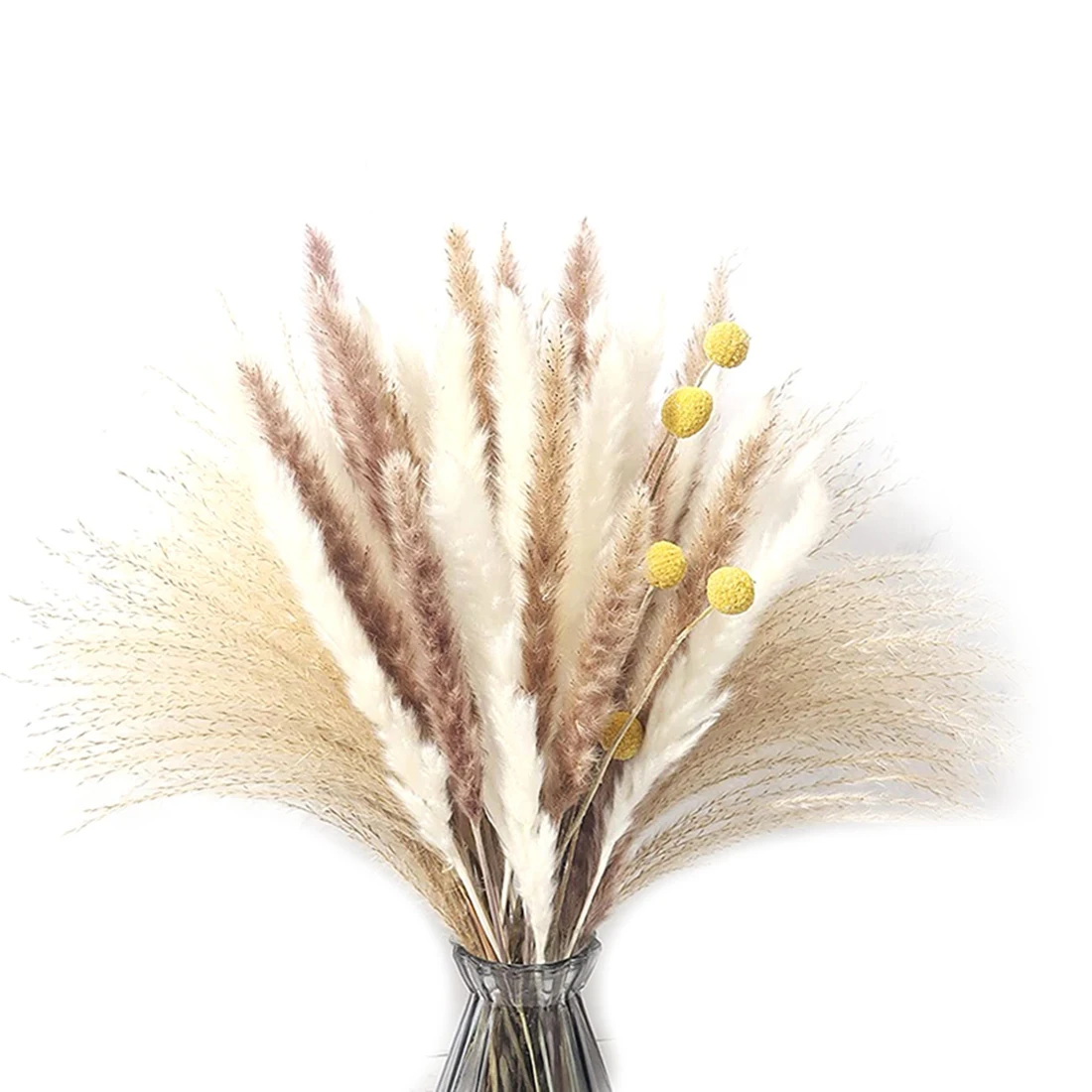 Сушеная пампасная трава, букет из 65 натуральных пампасных трав, декор в стиле бохо, высушенные цветы в виде нефрагмита, искусственные цветы