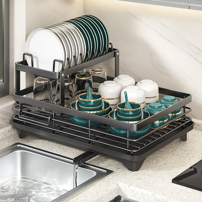 Сушилка для посуды, кухонная Регулируемая 2 уровня из нержавеющей стали