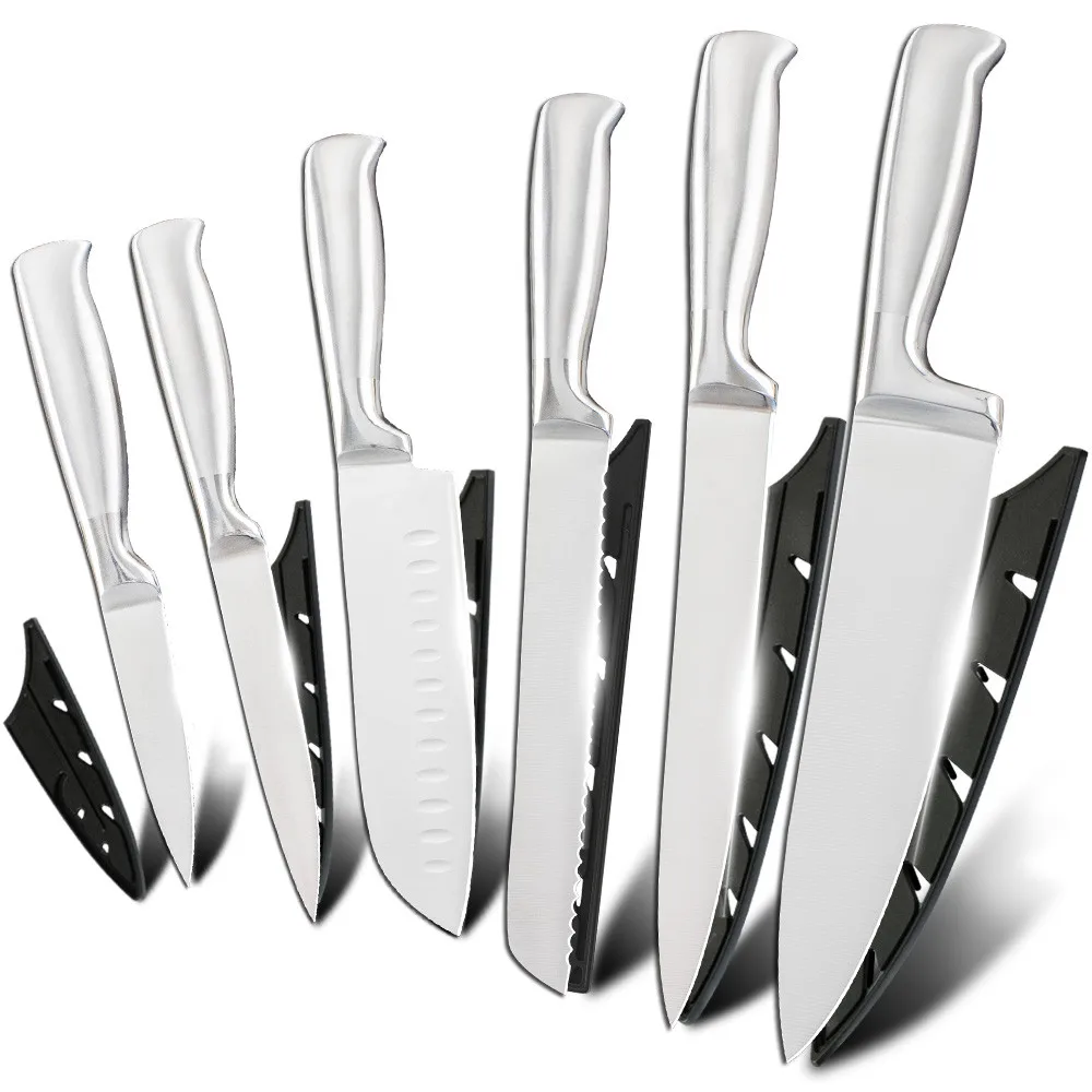 Xingye Professional 6pcs Chefs Stamped Stainless Steel Kitchen Knife With Knife Sheath, Silver