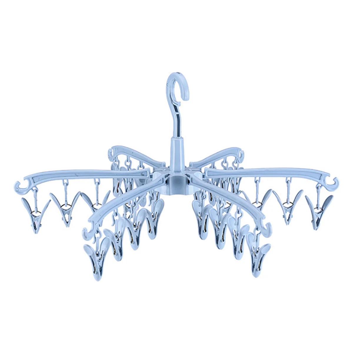 Сушильная стойка для носков 24 зажима Пластиковая вешалка для белья Вращающаяся вешалка Сушилка для носков Складная портативная сушилка для одежды 24 синий