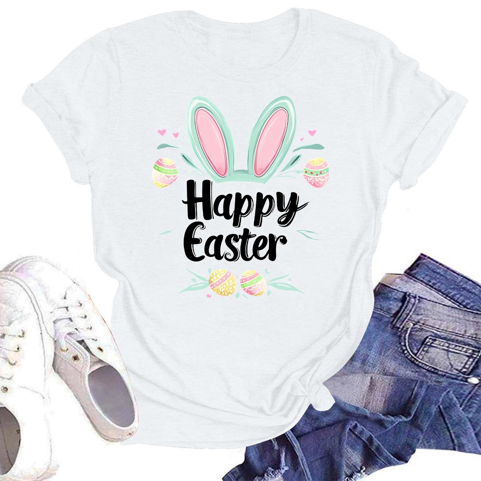 Счастливой Пасхи женская мода принтованный круглый вырез короткий рукав футболка пуловер топ XL белый