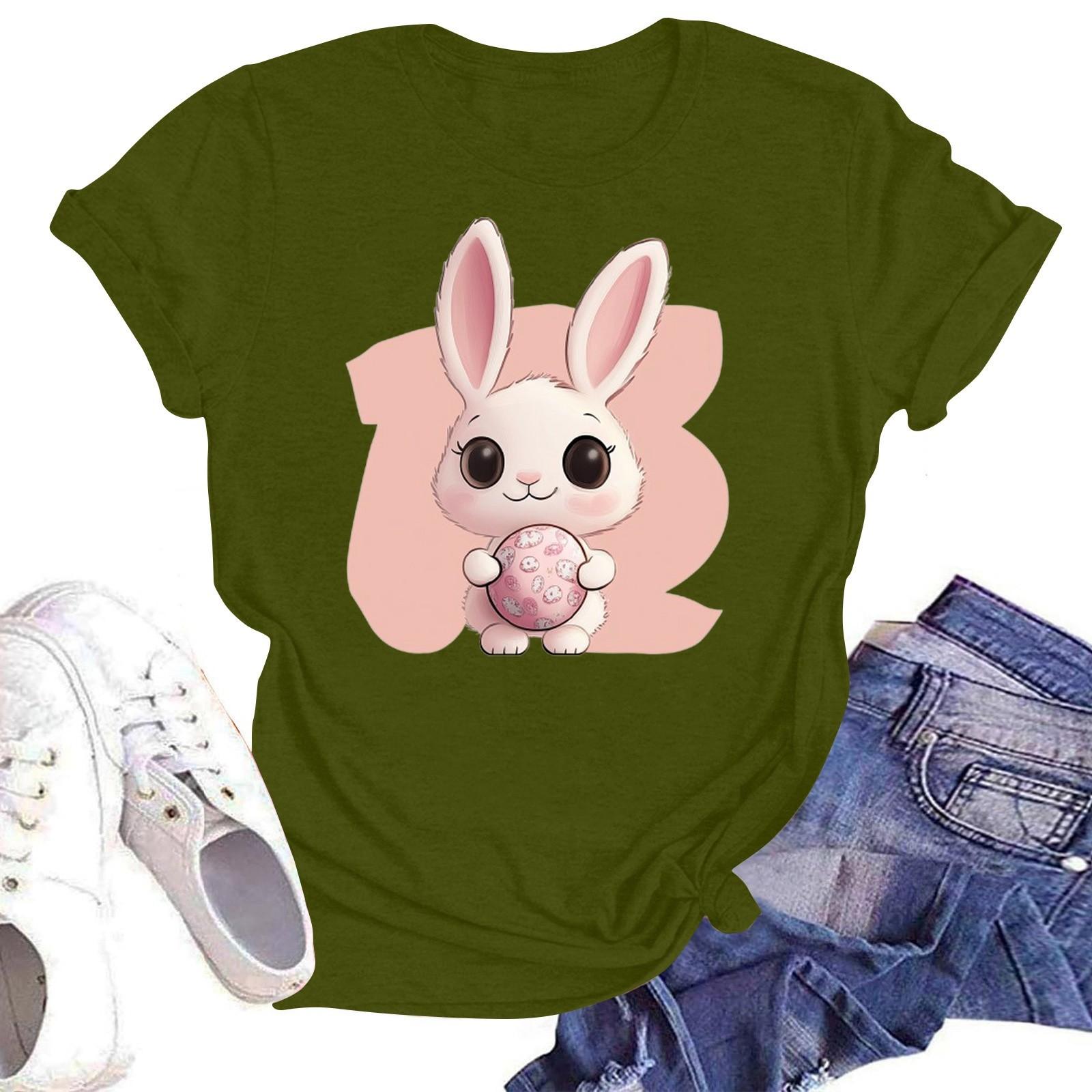 Счастливой Пасхи женская мода принтованный круглый вырез короткий рукав футболка пуловер топ S