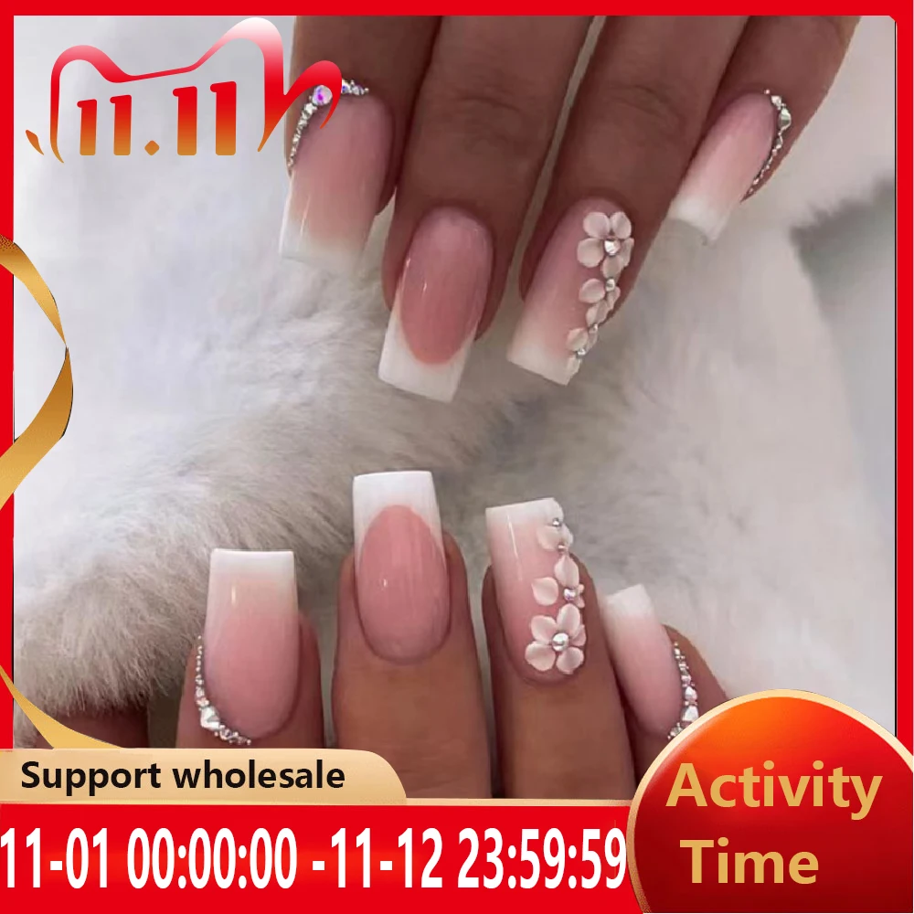 Съемные накладные ногти 24 шт./кор. простые накладные ногти с квадратной головкой носимые с алмазными французскими накладными ногтями полно...