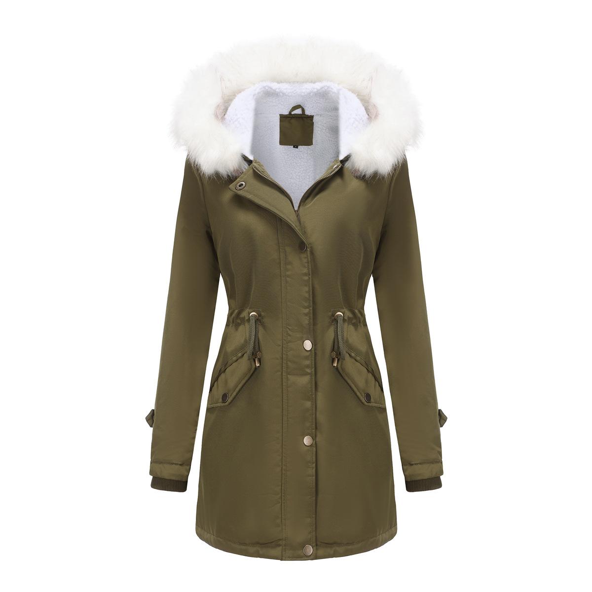 Съемный меховой воротник, пуховик, женская парка с длинными рукавами, куртка с капюшоном, теплая хлопковая куртка, бархатное пальто, хлопковая куртка, женское осенне-зимнее пальто 5XL зелёный
