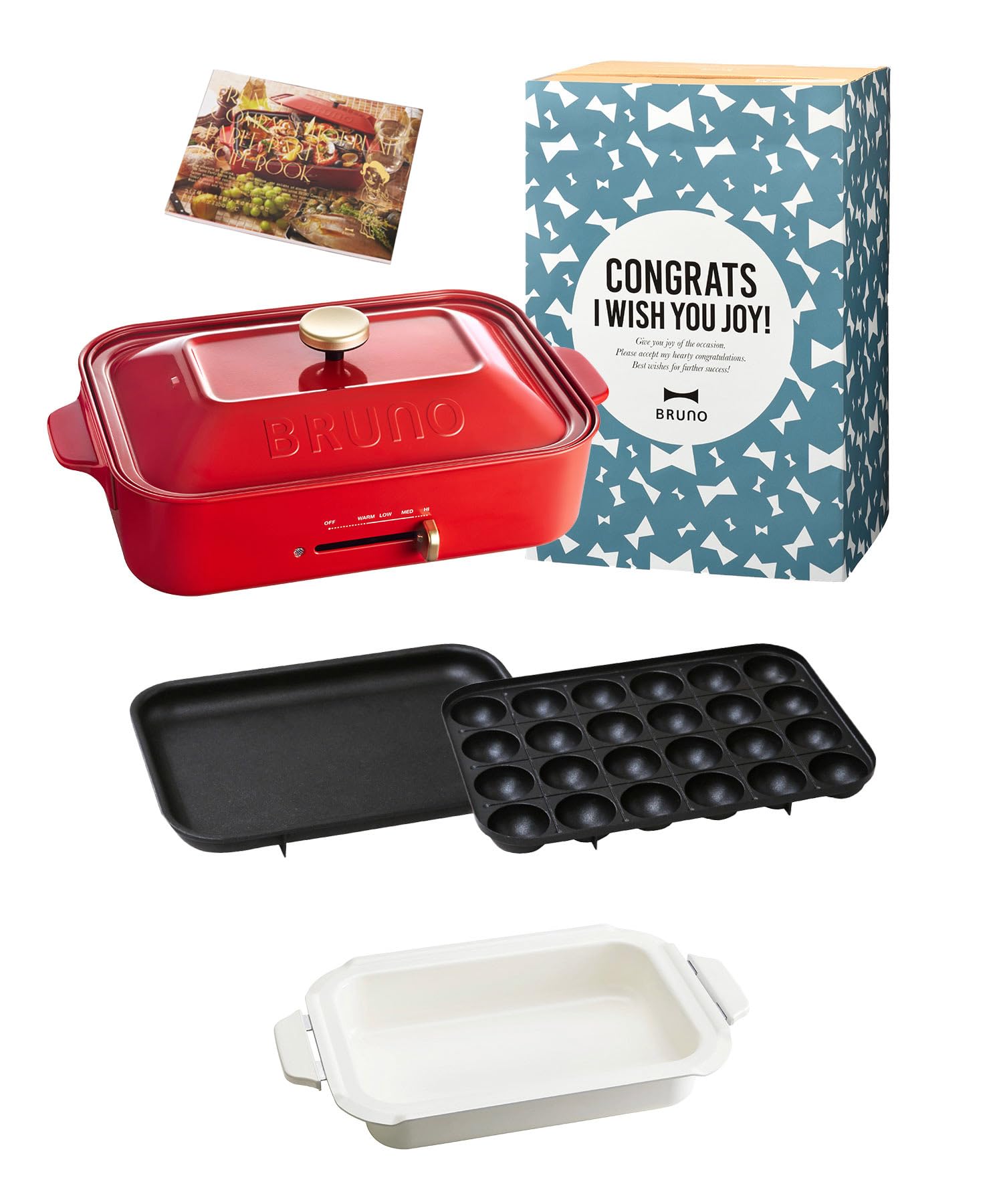 BRUNO Compact Hot Plate Main Unit 3 types of plates Ceramic Coated Pot Yakiniku Celebration Sleeve Recipe Book Included Red Red Stylish Cute This 1 червоний