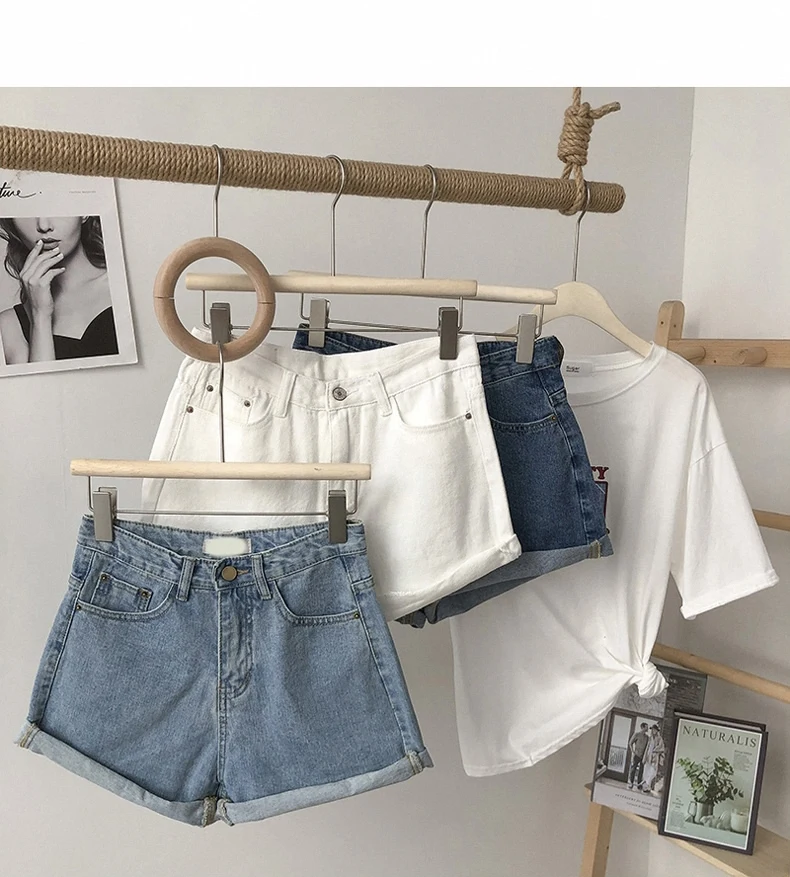 2023 Summer Curled Denim Shorts Women's Korean Edition Slim High Waist Versatile Casual Loose Wide Leg Hot Pants