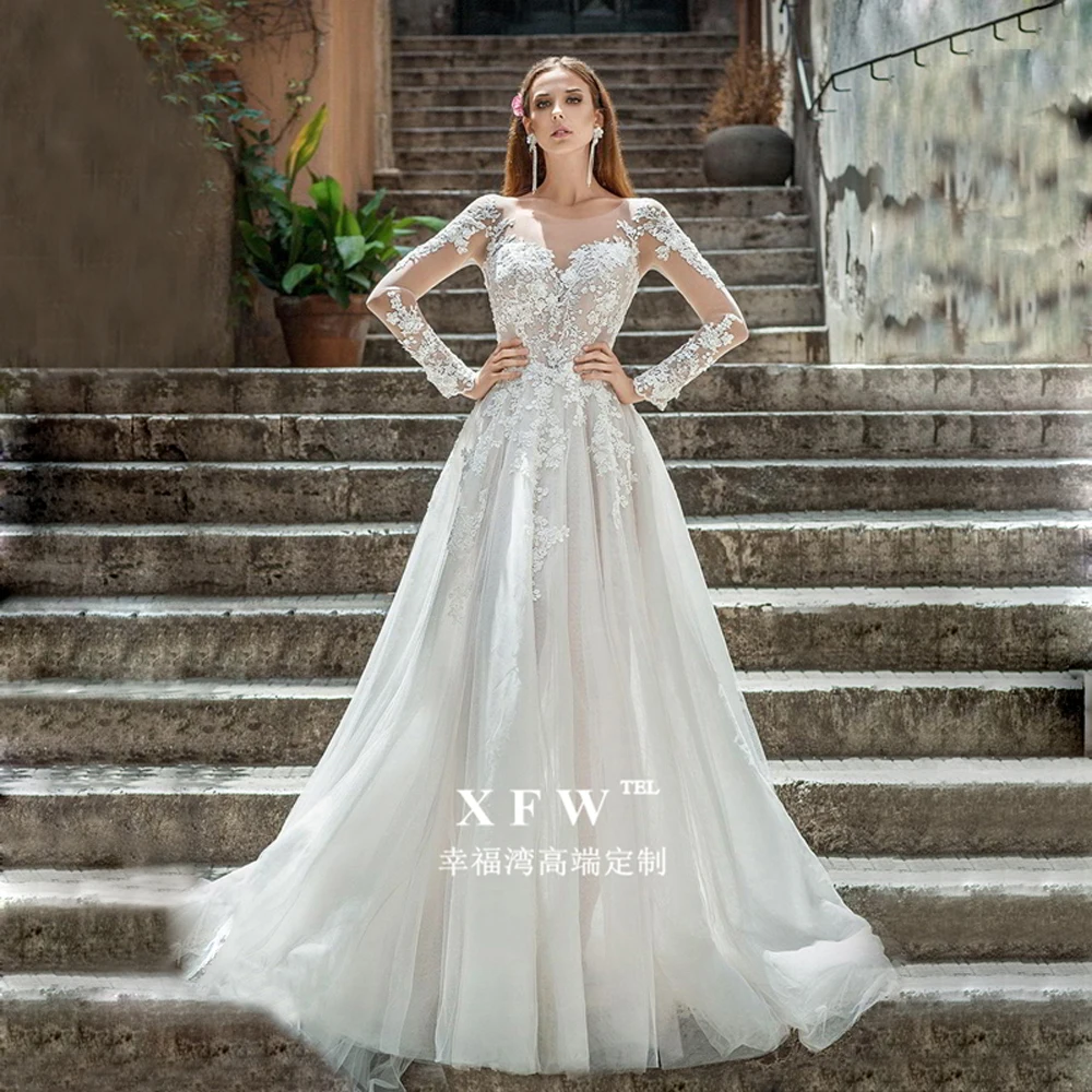 С Длинными Рукавами Свадебное бохо-платье 2021 новый сексуальный вырез лодочкой Свадебное платье класса люкс; lace Vestido Де Новия; Robe de Mariage