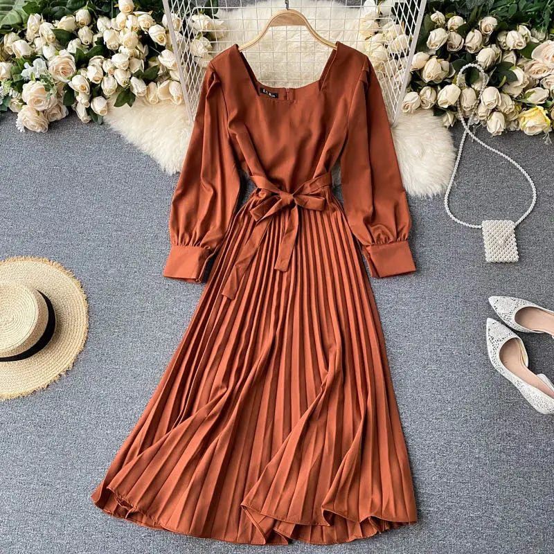 С буфами на рукавах Ретро осеннее платье для девочек кружевное платье для маленьких девочек; Талия на шнуровке с квадратным вырезом элегант...