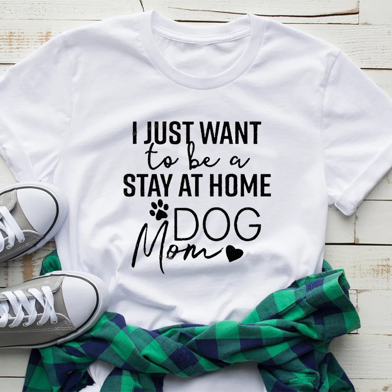 С надписью «I just want to сидеть дома собаки мама мамочка мать принт уличной моды с буквенным принтом футболки для женщин с О-образным вырезом с к...
