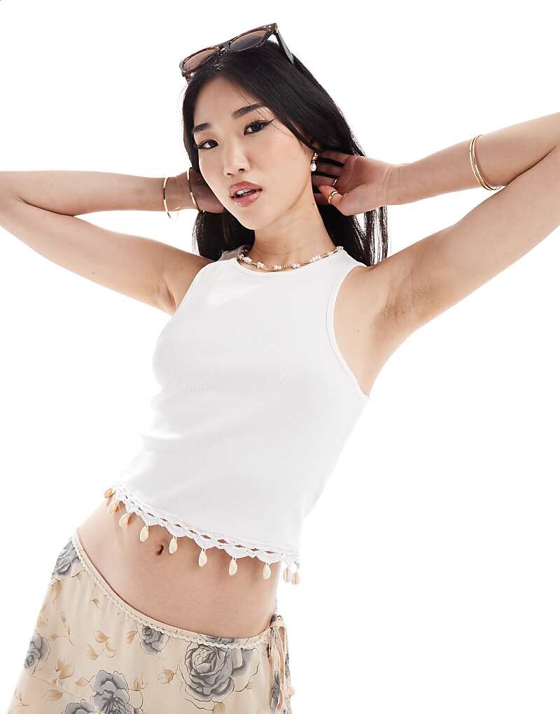 ТОЛЬКО = Майка в рубчик белого цвета = с деталями ракушки