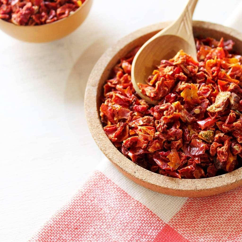Томаты в сушеном виде получили широкое распространение в сыроварении, благодаря своему нежному вкусу, приятному аромату и замечательной для сыра структуре. Кроме этого томаты признаны одним из натуральных усилителей вкуса.